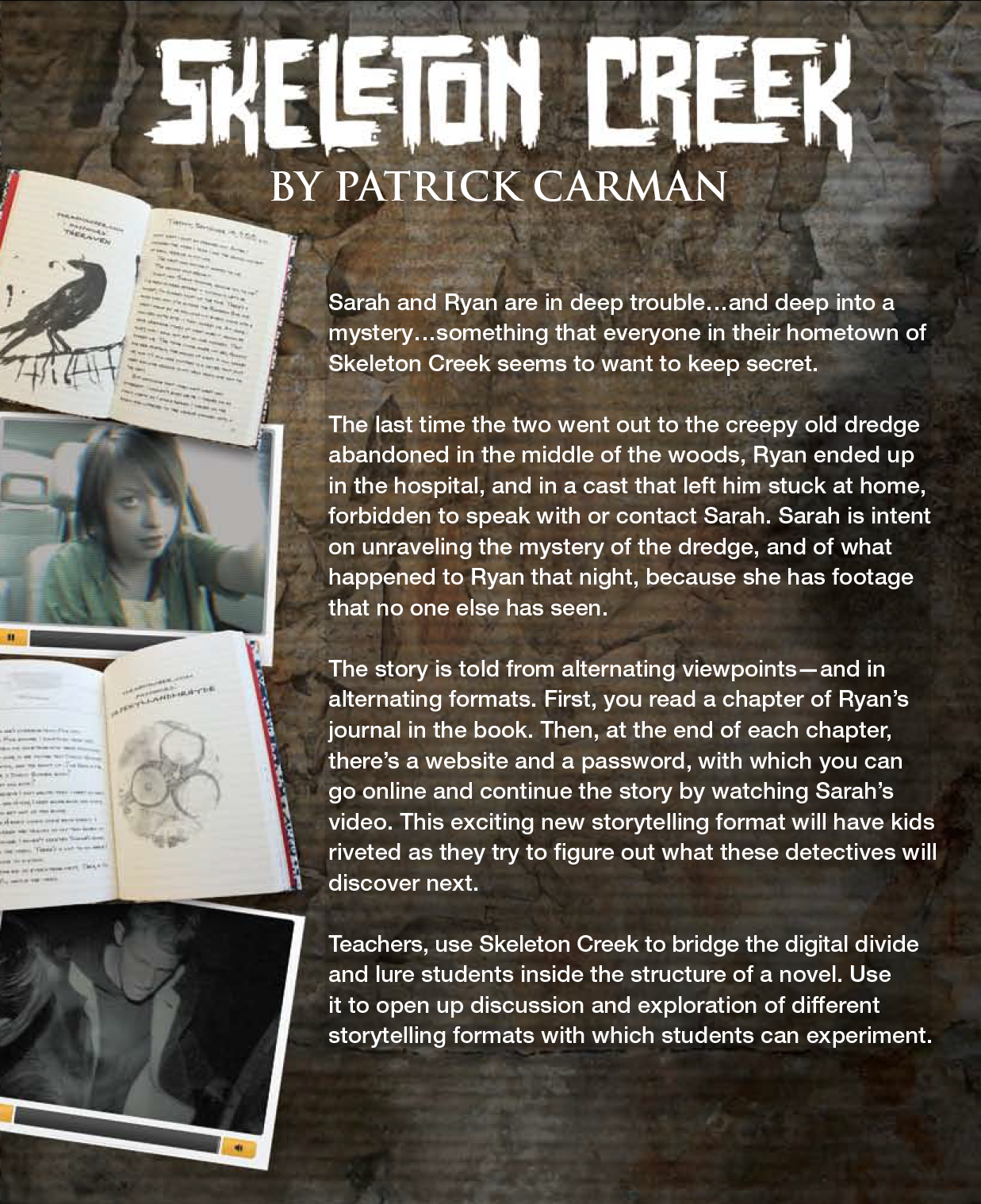 Skeleton Creek loves librarians, teachers and Halloween! Use the study guide to get young readers excited with discussion questions and activities. The passwords file guides readers through all the Skeleton Creek video passwords and the mysteries they unlock. And the Skeleton Creek Investigations are a great way to engage students with real world urban legends.